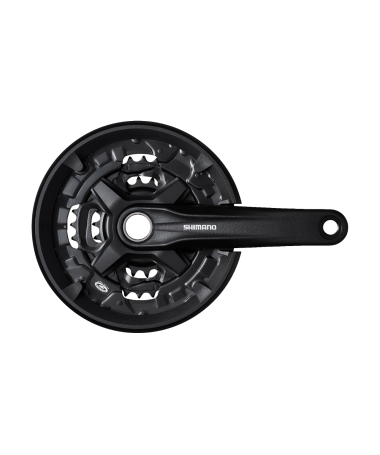 El juego de bielas Shimano FC-MT210 con su construcción de 2 piezas compatible con los pedalieres de 24 mm exteriores, el FC-MT210-3 de SHIMANO está diseñado para transmisiones de MTB de 3×9 velocidades. Lleva platos SG-X y proporciona un cambio preciso y fiable.