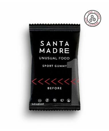 Functional Gummy 1 de Santa Madre es una deliciosa gominola energética natural con apenas 50 kcal para lograr una alta activación del cuerpo antes de realizar una actividad física exigente. Está formada agar-agar por una potente alga marina con múltiples beneficios, tanto en el rendimiento como en la recuperación. Está libre de grasas y contiene cafeína, un principio activo más que demostrado que nos ayudará a aumentar el rendimiento así como mejorar la oxidación de grasas. Es un producto 100% vegano, sin lactosa y libre de gluten.