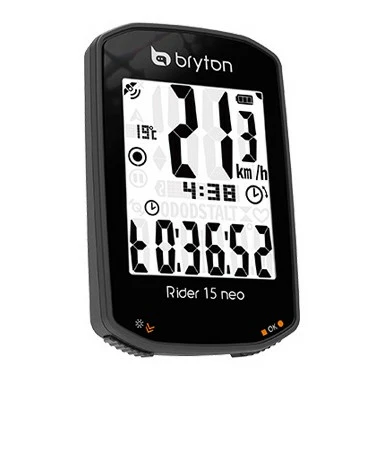 El GPS Bryton Rider 15 neo E incluye una pantalla nítida de 2“ y 3 botones intuitivos, así como un software mejorado, más de 21 funciones y un modo de orientación para mostrar en qué dirección se desplaza el ciclista.