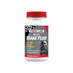 Finish Line presenta dos líquidos de alto rendimiento para frenado. Uno con base mineral y otro sintético con fórmula DOT 5.1. Ambos líquidos están de desarrollados para su uso en sistemas de freno de disco hidráulico y ofrecen una capacidad de frenado óptima durante mucho más tiempo. Aunque es 100% compatible con los líquidos DOT 3 y DOT 4, las especificaciones del DOT 5.1 los superan con creces. Ambos líquidos se caracterizan por sus aceites de muy baja viscosidad para asegurar una actuación impecable, incluso en las condiciones de frío más intenso.