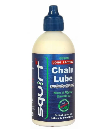 Squirt es un lubricante de cadena de cera único: contiene ceras y agua en forma de emulsión que se mantiene limpio, dura mucho tiempo y prolonga la vida útil de la transmisión. Es 100% biodegradable y está disponible en 120ml.