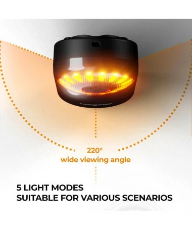 - Modos: 5 tipos (modo sólido, modo intermitente, modo pulso, modo pelotón y solo modo radar)