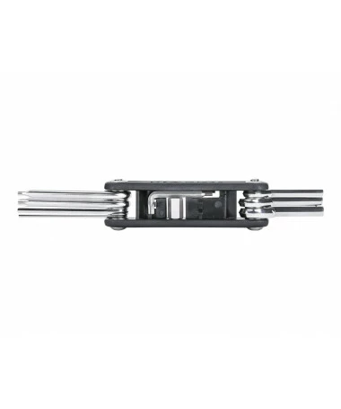 Multiherramienta Topeak X-Tool+ es una herramienta plegable de 11 funciones que se puede manejar fácilmente en la mayoría de las reparaciones. Es perfecto para el ciclismo diario. Diseño actualizado para asegurar una broca hexagonal de 8 mm. Incluye una llave tipo L autoapriete T20 / 2,5 mm.