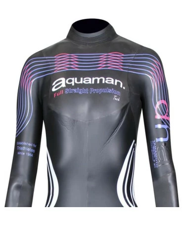 El Neopreno Aquaman DNA Lady es usado con ilusión por muchas triatletas que disfrutan del placer de nadar en un Aquaman a un precio módico. El DNA está construido a partir de Yamamoto #39 con una serie de innovaciones técnicas de Aquaman. Este traje de neopreno muy flexible y flexible es muy apreciado por los triatletas porque mejora el rendimiento a un precio muy razonable. El collar es un nuevo “collar giratorio” que coloca la parte delantera del collar 20 grados hacia adelante y está 2 cm más abajo, lo que permite una mayor comodidad y reduce la entrada de agua a través del área del collar. Otra característica es el Flash System en la parte posterior del cuello para evitar rozaduras y ayuda en la apertura de la cremallera. El traje está confeccionado con 17 paneles para dar un corte ceñido. El torso está hecho con Yamamoto #39 tratado con SCS y neopreno Smoothskin en la parte superior de las piernas, la parte trasera y la espalda.Los hombros están confeccionados con neopreno #39 y el textil Ultraflex en el interior para brindar una gran flexibilidad. Los antebrazos tienen el “Aero Design Propeller” para proporcionar una mejor captura del agua durante la fase de tracción de la brazada.