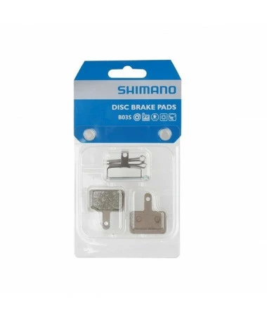 Pastillas de freno Shimano B03S para MTB con placa de acero y compuesto de resina que hace que la frenada sea mas progresiva y menos ruidosa.