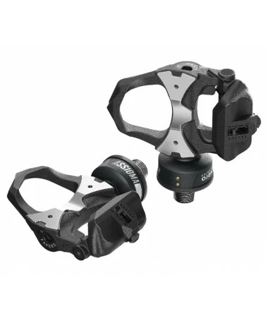 Los pedales con potenciómetro Assioma Duo se instalan y se cambian de una bici a otra como un pedal corriente: en pocos minutos, sin necesidad de herramientas especiales ni de asistencia del mecánico. Assioma dispone de las métricas avanzadas IAV Cycling Dynamics: IAV Power Phase e IAV Rider Position. Estas métricas, juntas con los datos de potencia clásicos, permiten analizar en detalle la técnica de pedaleo y cómo la posición del ciclista en la bicicleta impacta en el rendimiento. A diferencia de otros, los datos de Assioma no se ven afectados por errores relacionados con el pedaleo muy irregular o el uso de platos ovalados. Esto se debe a que Assioma es capaz de detectar la velocidad angular instantánea real de la pedalada, así garantizando un grado de precisión de ±1% en cualquier situación. No sólo en laboratorio. Assioma dispone de las tecnologías Bluetooth y ANT+, que permiten transmitir datos de manera segura a ciclo-computadores y Smartphones Android e iOS. Los datos suministrados por Assioma DUO se basan en medidas reales tomadas por separado en la pierna derecha e izquierda; esto permite observar con precisión no solo la potencia total, sino también el reparto de potencia entre pierna izq/dcha, la eficiencia del par (Torque Effectiveness / TE), la uniformidad de pedaleo (Pedal Smoothness / PS), etc.